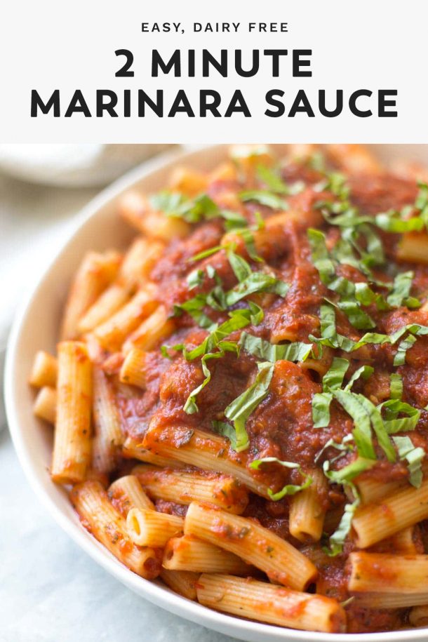 If I had to claim one meal as my go-to dinner recipe, this 2 minute marinara sauce would be it. Whenever I’ve failed to prep a recipe for dinner, or forgotten to take something out of the freezer for the night, I almost always make this. It’s been a life saver and a belly filler for many years.