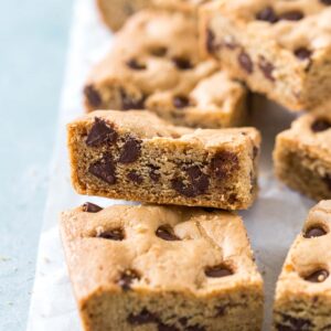 Regardless of the reason, I’m in love with them. I had to stop myself from eating the whole pan for breakfast the other day. They’re so good that I might need to turn my chocolate chocolate chip cookies into bar form, too.