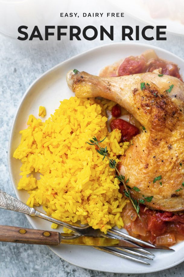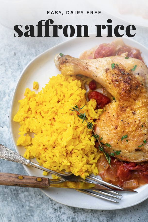 I also knew I didn’t want to completely miss out on that yellow, saffron rice that is so common in Spanish cuisine. So I decided to just make it separately instead, and I’m so happy I did.