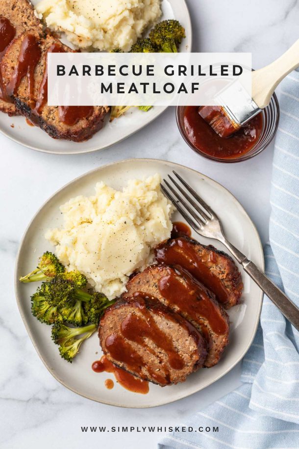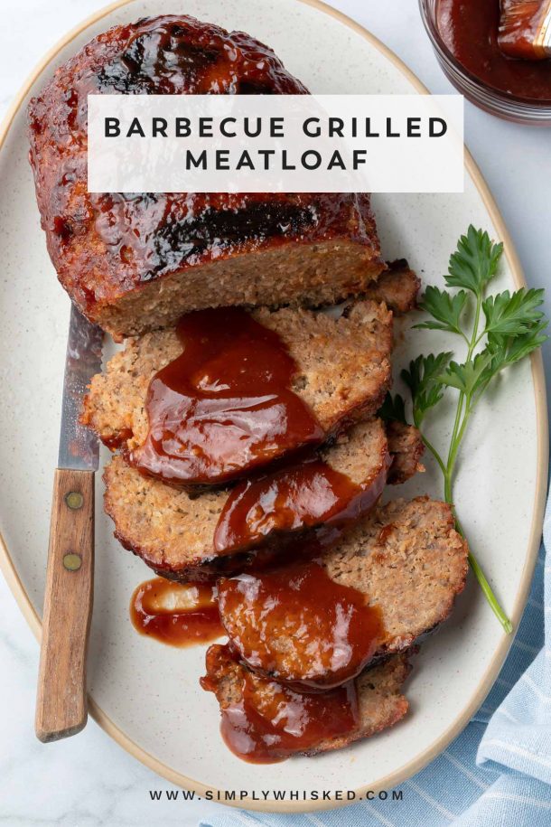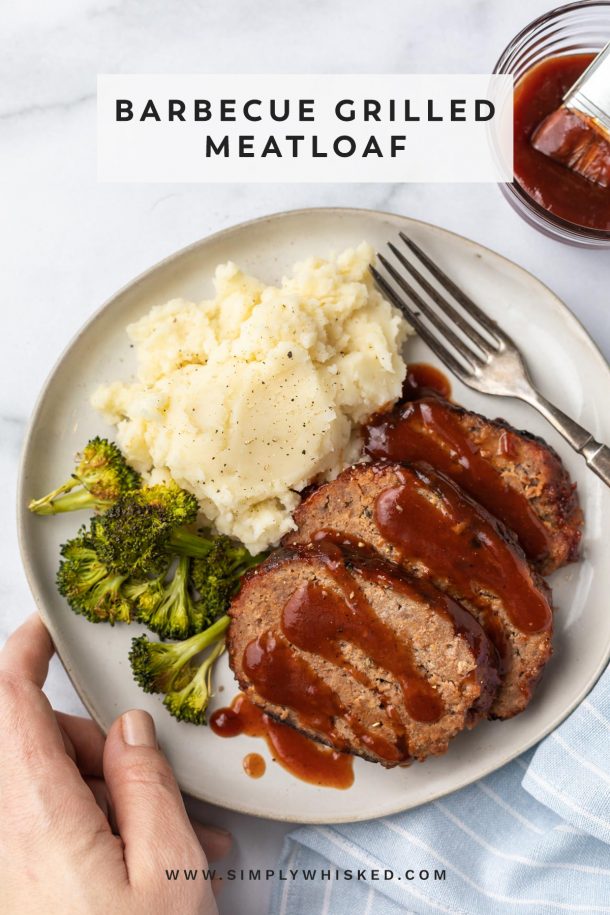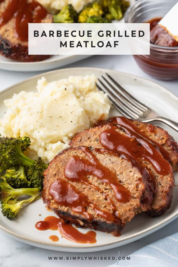 This time I’ve made grilled barbecue meatloaf. It’s a nice change from a regular baked meatloaf. It’s got the spicy kick of barbecue sauce and added flavor complexity from the mixture of ground pork and beef. It’s also a cinch to put together.
