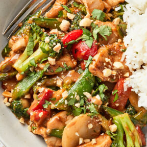 This peanut stir fry is one of my favorite dinners to make when I’m craving something healthy. It’s full of veggies, and the sauce is so full of flavor – and we usually have most of the ingredients in our pantry already.