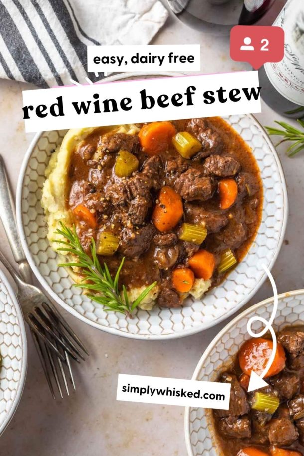There’s really nothing more comforting than a warm bowl of hearty stew. I absolutely love it when the weather is cold, and this red wine beef stew is one of my favorites. I’m also really fond of Irish beef stew, but I typically save that for St. Patrick’s day.