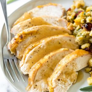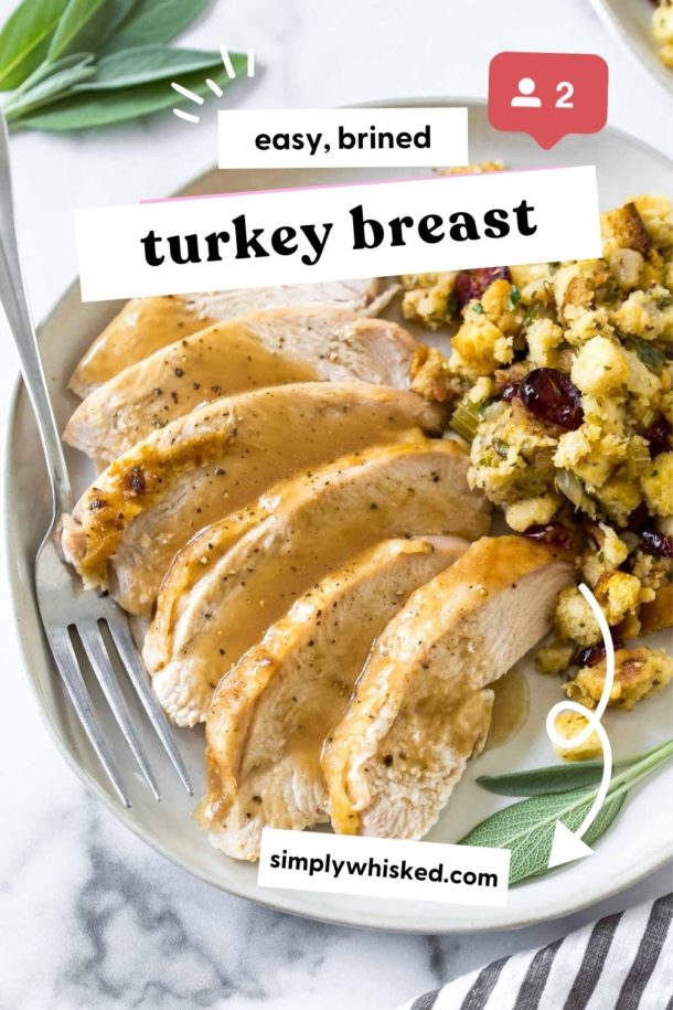 If you’ve never tried a turkey brine, I think it’s totally worth trying. It might change the way you look at turkey, especially the white meat. It creates a tender, juice turkey breast that can withstand a tiny bit of overcooking.