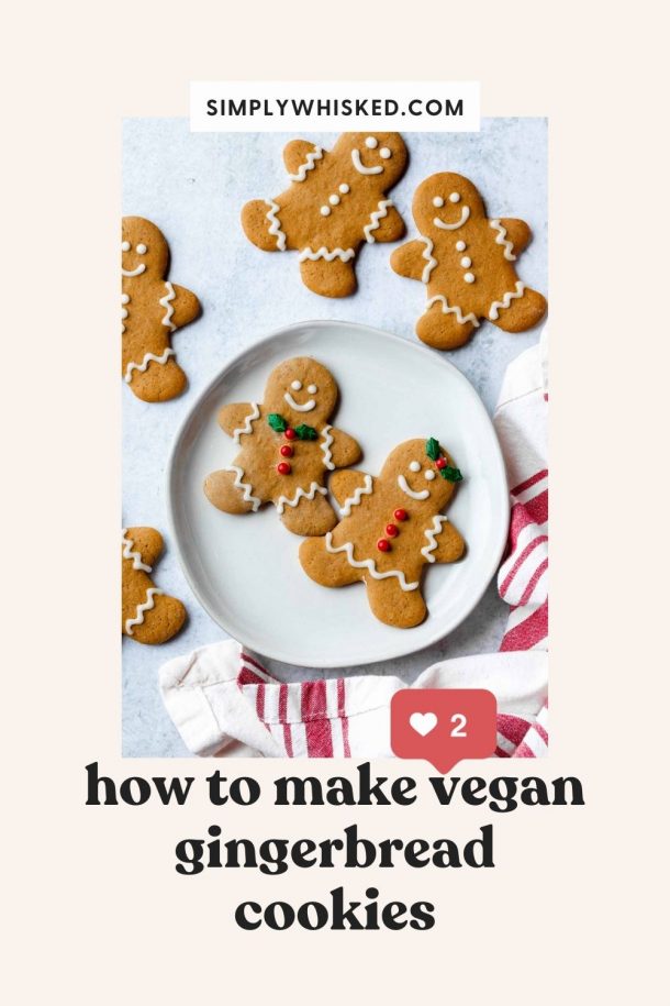 We deciding to go completely vegan for those of you who are also dealing with an egg allergy. We used canned pumpkin as an egg replacer, and it worked so well in this recipe. The flavor compliments the gingerbread spices and the color enhances the color of the cookies. So it’s a win-win.