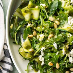 This zucchini and arugula salad will go great with any summer meal. Pair it with some grilled chicken for a healthy dinner or serve this as a side for a backyard barbecue.